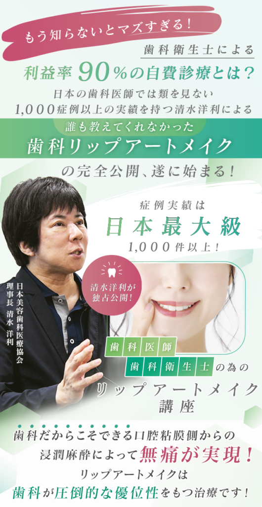 症例実績は日本最大級1000件以上!清水洋利が独占公開!歯科医師・歯科衛生士の為のリップアートメイク講座